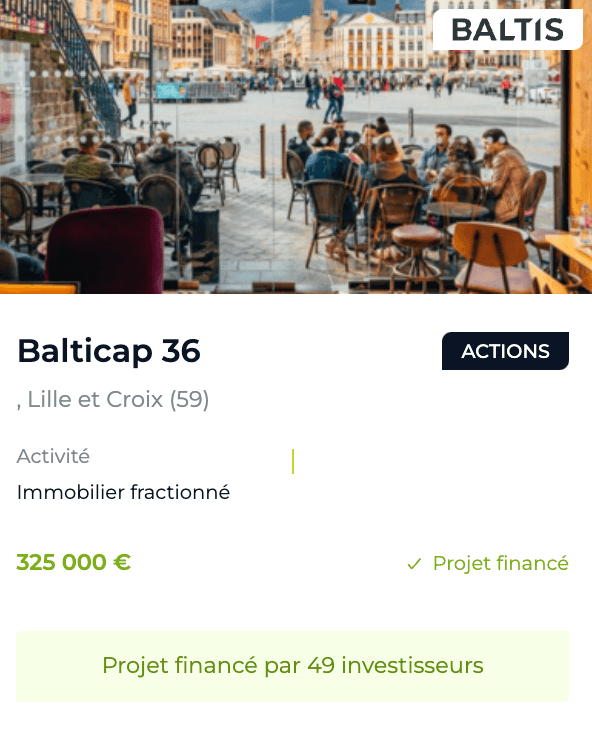 Nos projets Balticap, initiés par l'acquisition des murs d'une poissonnerie à Lille (59), ont permis à beaucoup d'entre vous de devenir propriétaires à partir de 100€, une révolution dans le secteur de l'immobilier.Nous avons réalisé l'acquisition de près de 40 locaux commerciaux en France, représentant environ 15 millions d'euros.
